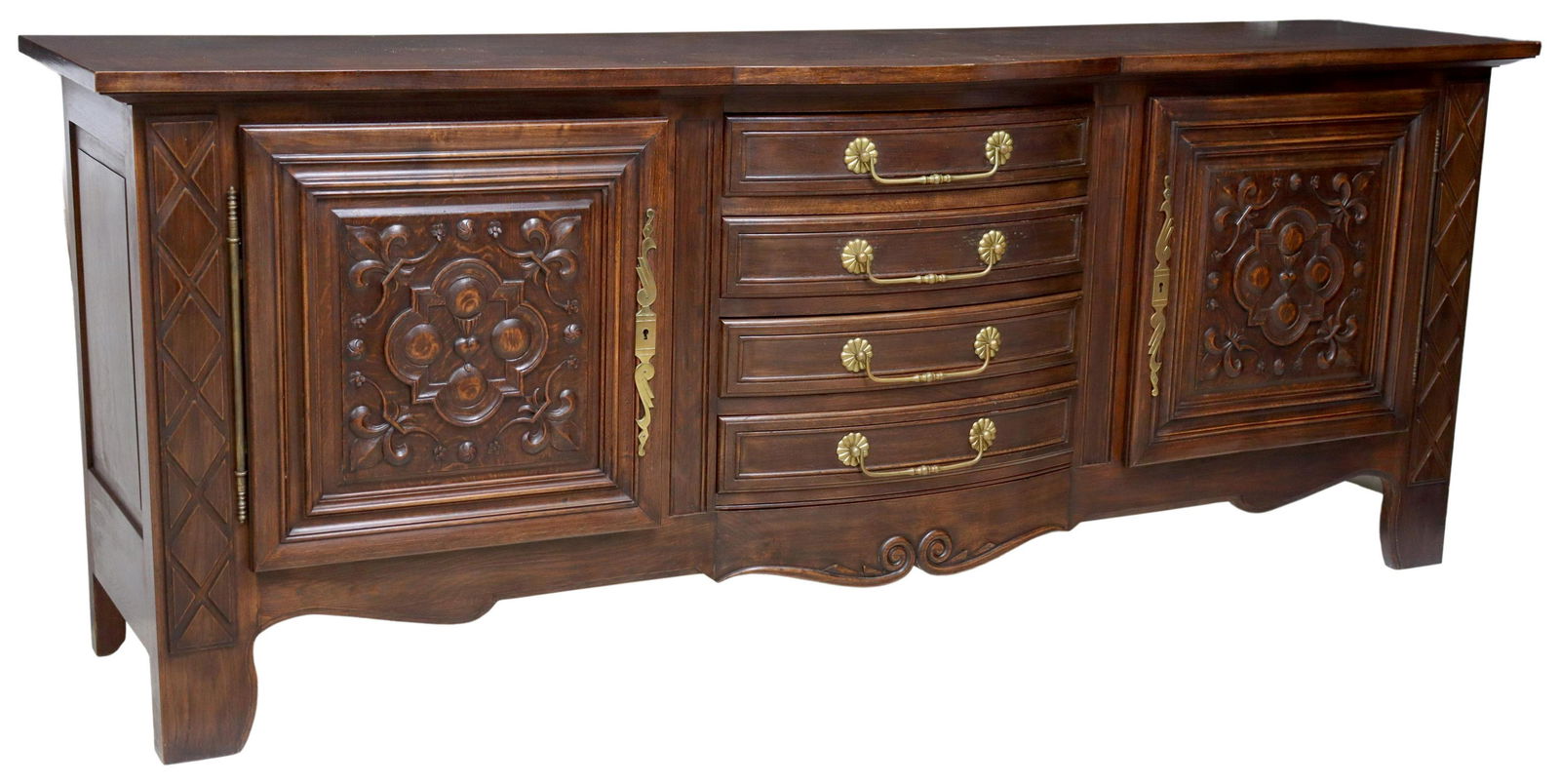 FRENCH DARK OAK FOUR DOOR SIDEBOARD WITH SYCAMORE INTERIOR C 1945.Kamelot Auctions4.4(345)$1,2006 days Left