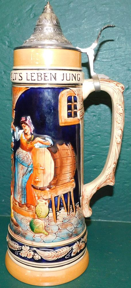 Antique c. 1900 Gertz 1816 German Stein 2L """"Tiroler Leben"""" Pouring Vessel w/ Lid (French Zone)ART 4 AUCTION4.3(4)£100