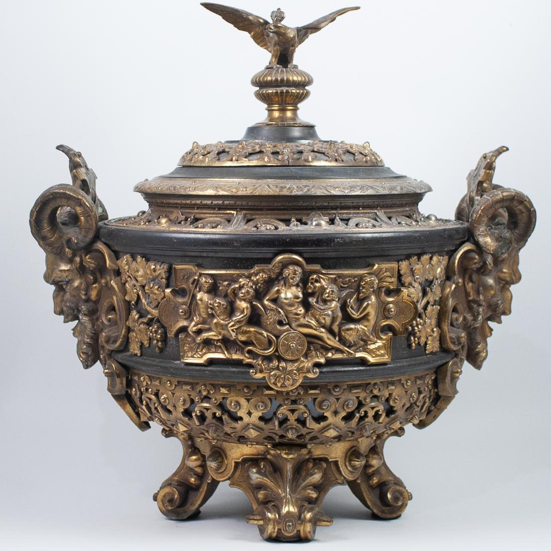 A BRONZE INCENSE BURNER WITH COVERMar 22, 2026A BRONZE PARTLY GILT GARNITURE WITH COVERMar 22, 2026A BRONZE-GILT FIGURAL STORY JAR WITH COVERMar 22, 2026A BRONZE-GILT LOBED CENSERMar 22, 2026An Exquisite Gilt Bronze Beast-Face Pattern With Inscription Double-Ears Tripod Censer14 hrs LeftBronze Grand Tour Classical Figural Urn Lamp on Acrylic Base4 days LeftA Brilliant Gilt-Bronze Silver 'Figure& Flower' Tripod VaseMar 29, 2026Large Chinese Export Dragon Censer w/ BaseMar 20, 2026A Chinese bronze incense burner, Ming dynastyMar 21, 2026A Chinese gilt-bronze 'immortals' incense burner, Qianlong period, Qing dynastyMar 22, 2026Ancient Greek Urn Bronze StatueMar 12, 2026Ancient Greek Urn Bronze StatueMar 17, 2026Gold-plated bronze incense burner5 days LeftFormerly in my collection, a pure copper vase with high-relief engraving and silver gilding of plum14 hrs LeftA three-legged gold bell carved with pearl ground lotus petals and bird and beast patterns from theMar 22, 2026A George III Pierced Silver Sugar UrnMar 17, 2026