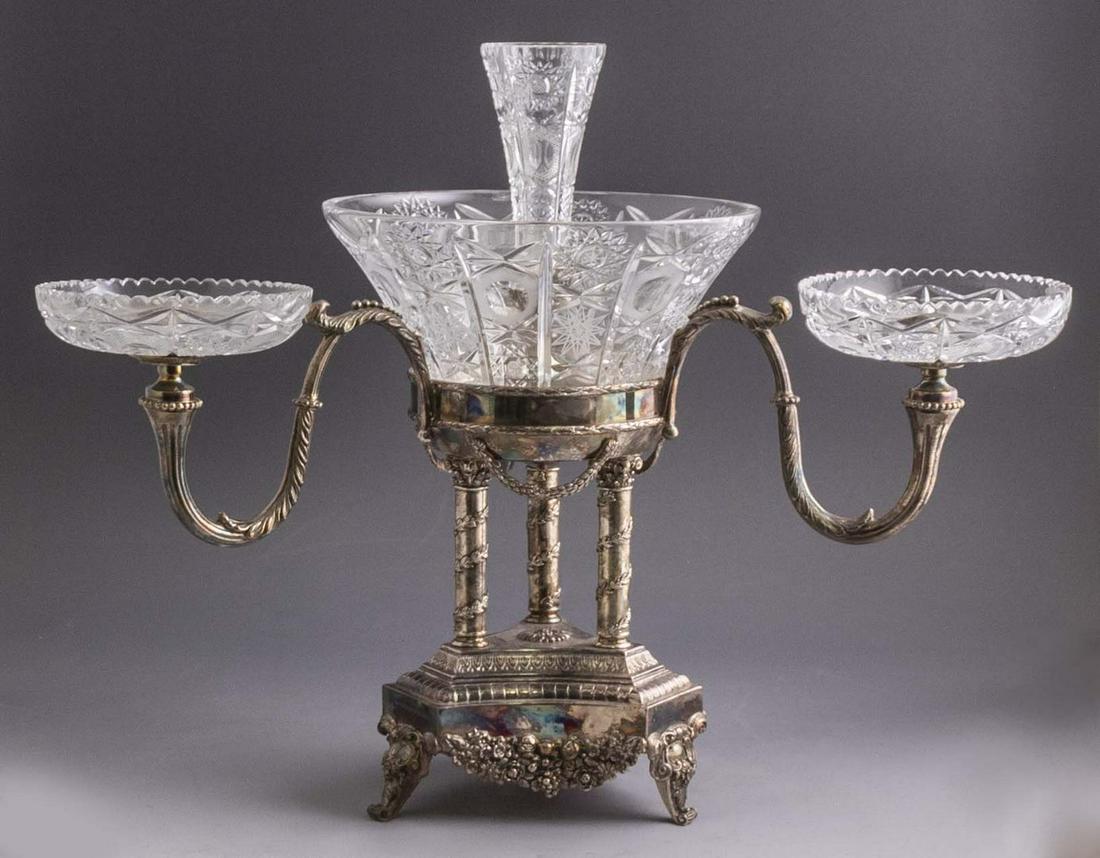 Large Glass and Silver Centerpiece