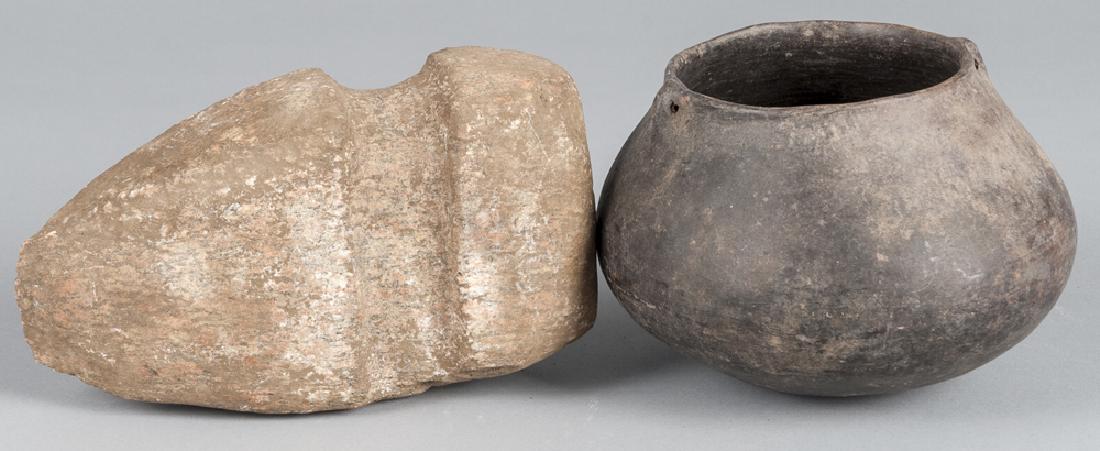 Large granite axe head, 5'' x 9 1/2'', together wit