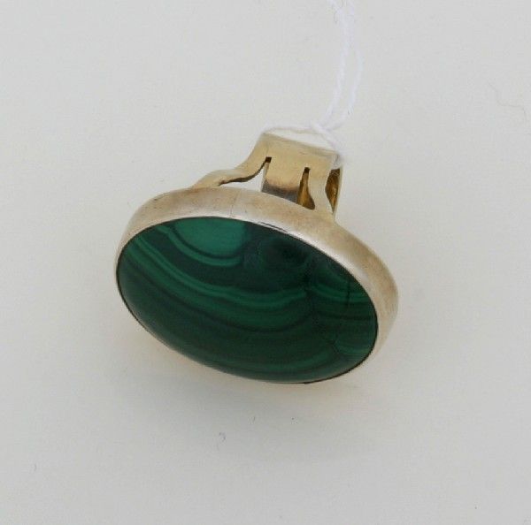 14K gold chrysoprase, coral, lapis lazuli, turquoise and malachite mounted ring. Large central green14K gold chrysoprase, coral, lapis lazuli, turquoise and malachite mounted ring. Large central green chrysoprase cabochon measuring 12.6 x 17.5mm surrounded by polished coral, lapis, malachite, and tu