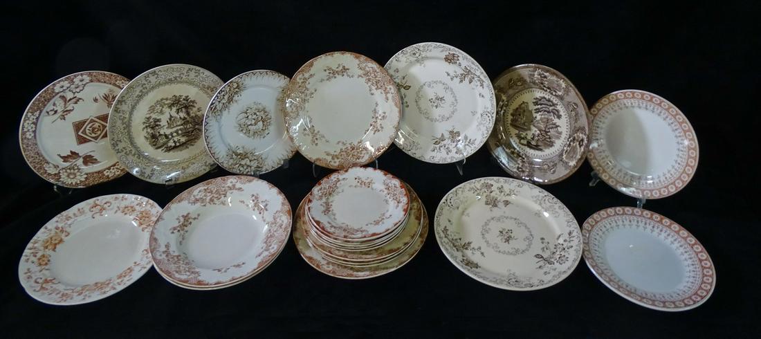 LARGE GROUP (21 PCS.) TRANSFERWARE PLATES LARGEST 10" DIA.