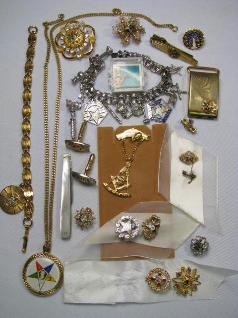 LARGE GROUP MASONIC EASTERN STAR JEWELRY