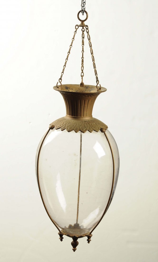 SoldApothecary hanging show globe, tear-drop glass w/castApothecary hanging show globe, tear-drop glass w/cast metal hanger & wall bracket, c.1890s, Exc cond, 22"H excluding chain, bracket is 8"H x 15"L.See Sold Price
