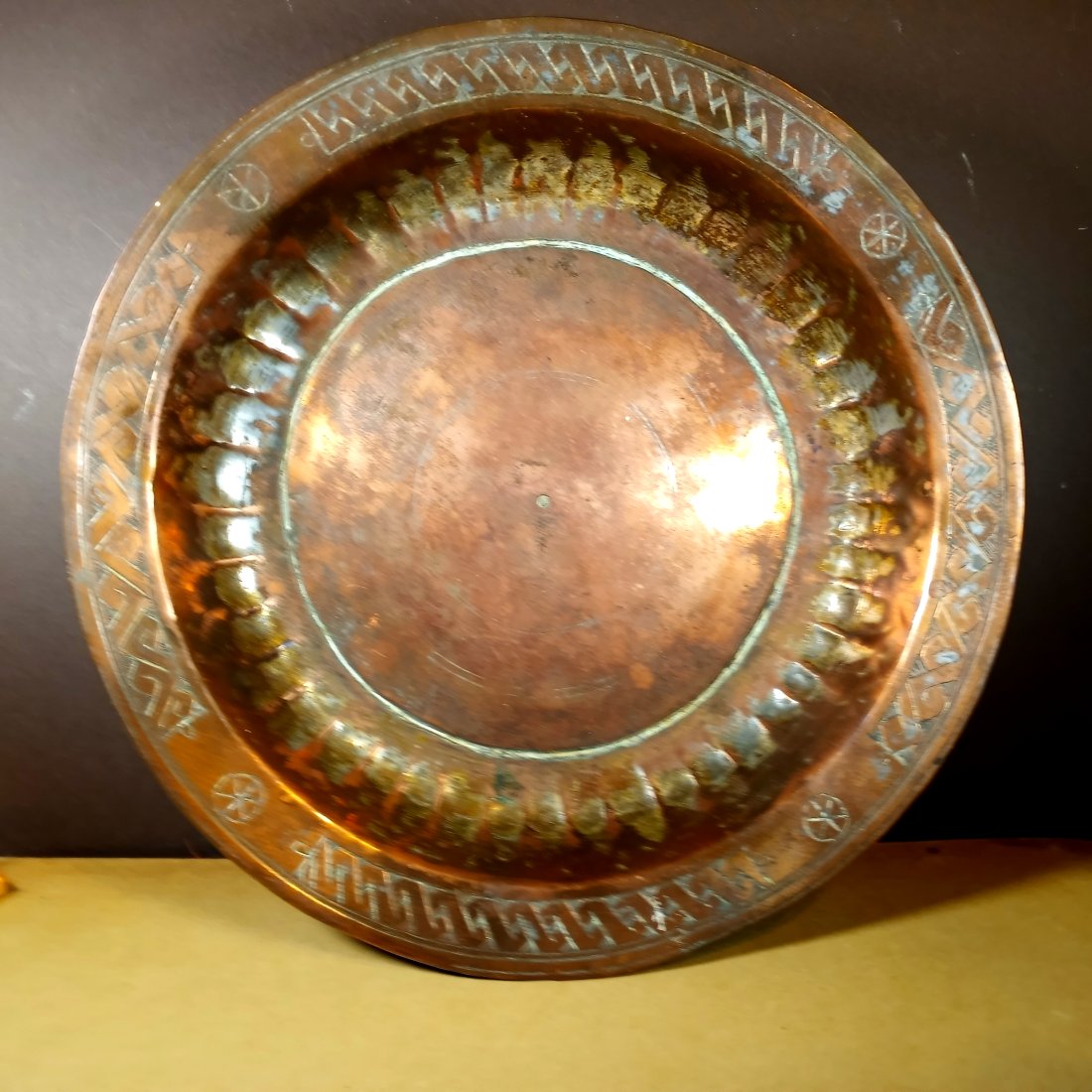 Large Heavy Copper Antique Offering Plate