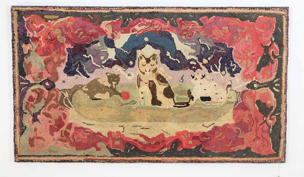 LARGE HOOKED RUG WITH CATS