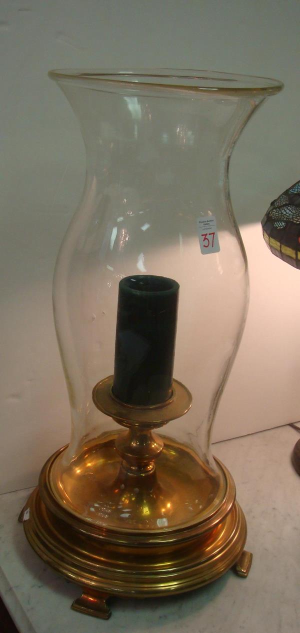 Large Hurricane Shade with Brass Candle Holder Base