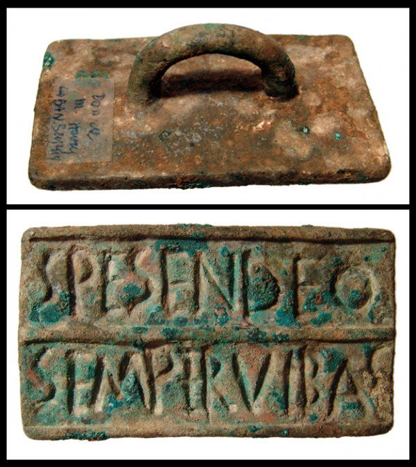Large incised Roman bronze bread stamp