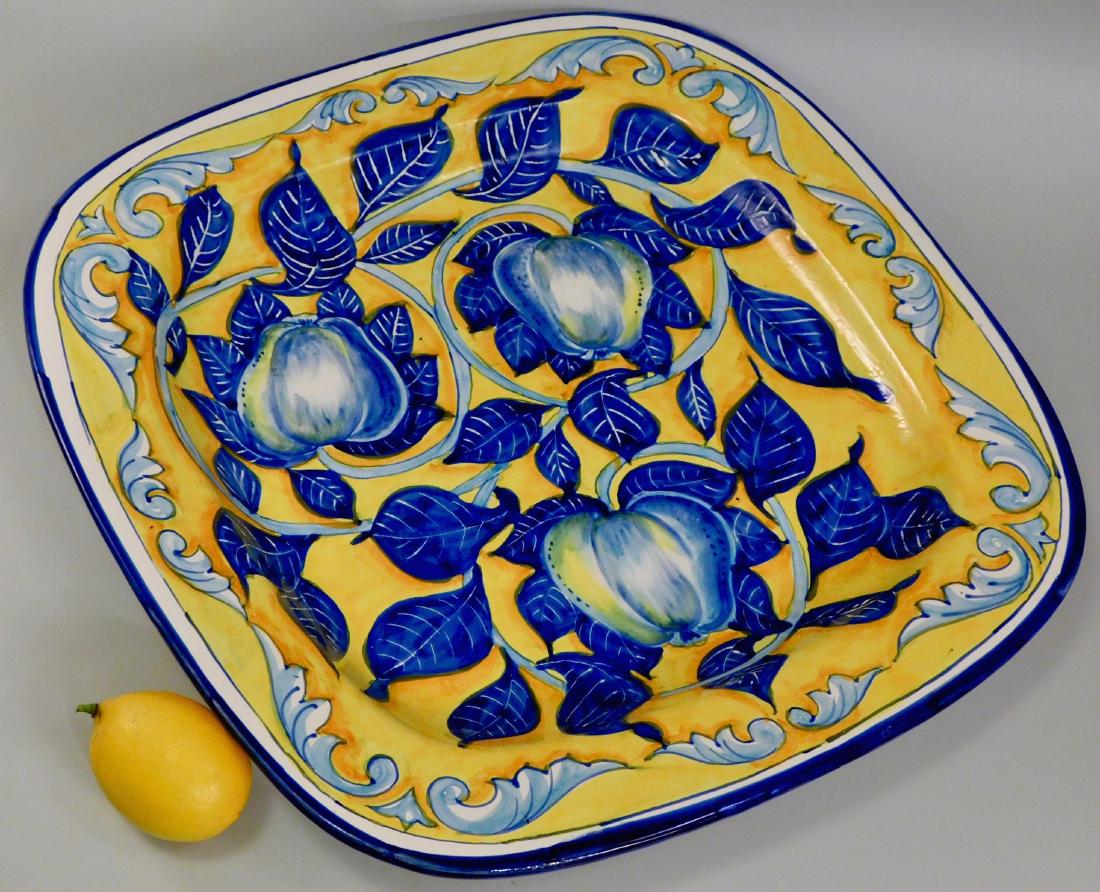 Large Italian Square Wall Plaque Painted Blue