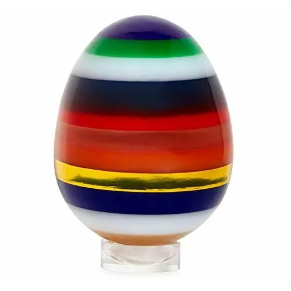 SoldLARGE MURANO GLASS MILLEFIORI EGG LAMPLarge Italian hand-blown Murano art glass millefiori egg form lamp, having oversized multi-colored canes, apparently unmarked. Approx. h. 25", dia. 16.5".See Sold Price