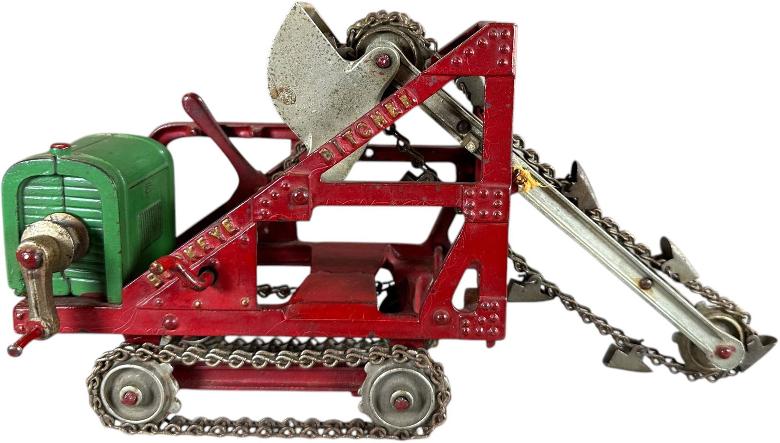 SoldKenton Toys Buckeye Ditcher Cast Iron ToyKenton Toys Buckeye Ditcher Cast Iron Toy. Beautiful ditcher toy with red, green and gold paint. The ditcher has all of its original chains, bucket, and motor with crank handle which all function as tSee Sold Price