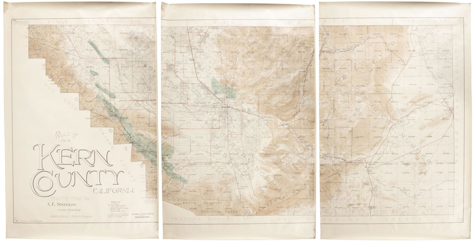 Large Kern County Map On 3 Sheets 1918