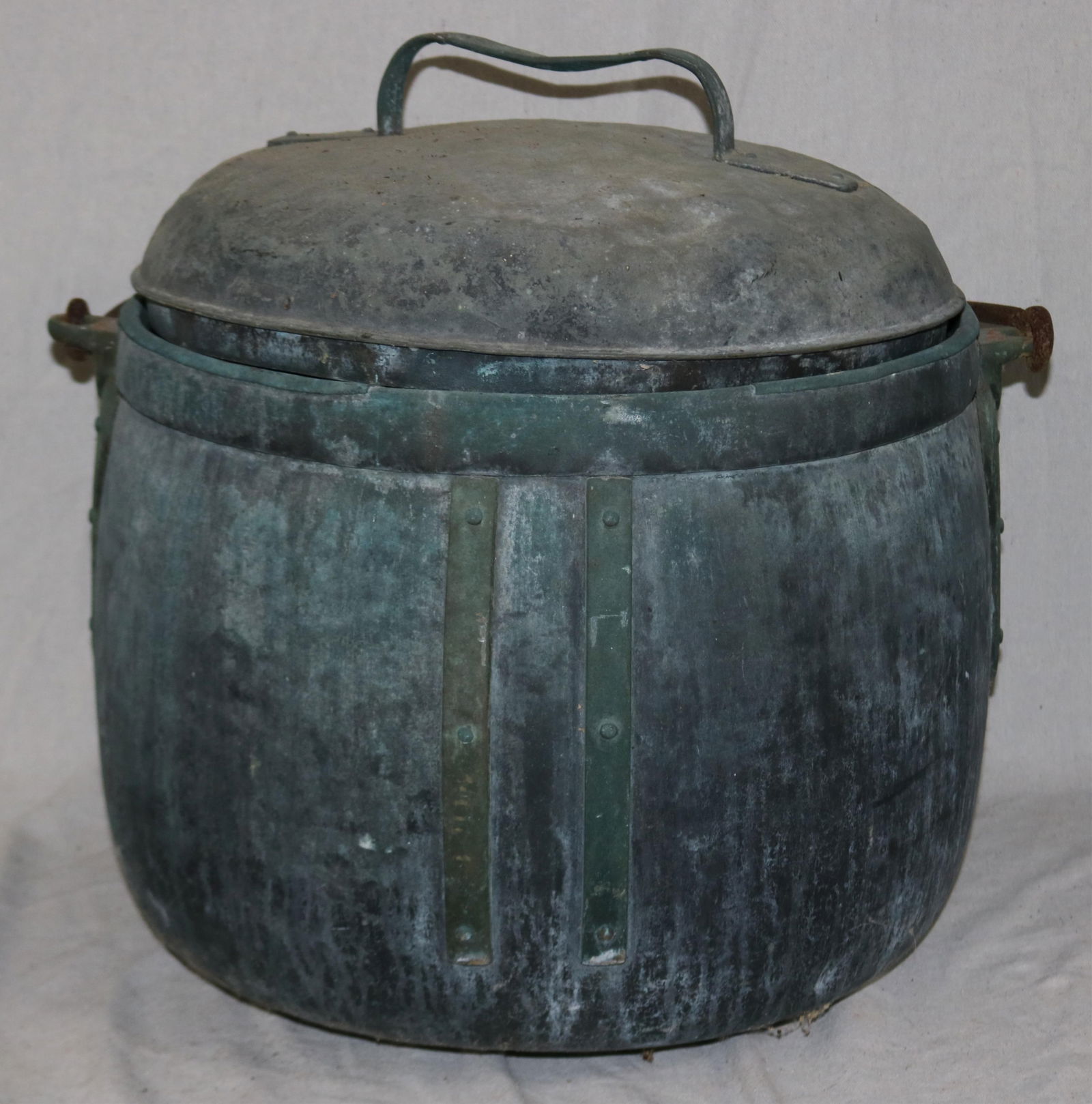 LARGE LATE 19TH C. COPPER? CAULDRON WITH IRON