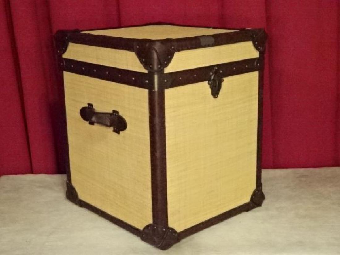 LARGE LEATHER ACCENTED TRUNK, VERY GOOD CONDITION WITH