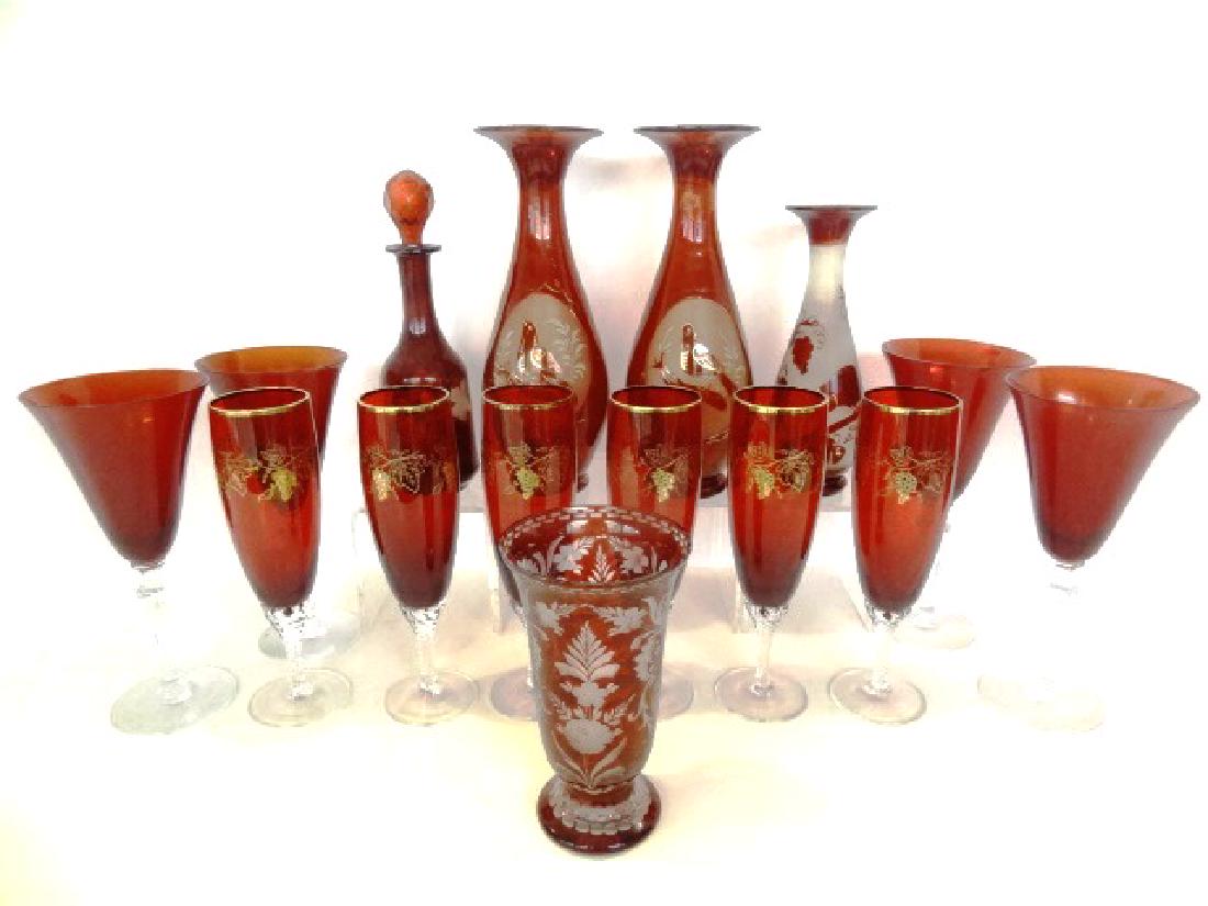 (22) PARCEL-GILT CUT CRYSTAL DRINKWARE, COUPES, FLUTES & TUMBLERSFeb 21, 202630 Pieces of Antique Etched Crystal Stemware.24 hrs LeftA Collection of Six Vintage Ruby Red Flashed and Cased Crystal Items, Including Lenox CrimsonFeb 15, 2026Assembled Group of Ruby and Colorless Glass Stemware5 days Left1990s Ruby Red Wine Glasses- Set of 54 Cristal D’Arques Durand Ruby Red Goblets4 days Left12 Edgar Berebi Red Enamel Jeweled Stemware Wine Glass Goblets Ltd Ed2 days Left6 Bohemian Amber Gold Cut Glass 8 ounce Water Goblets, 19th Century2 days LeftGroup of Ruby Overlay Cut Glass Stemware6 days Left6pc E&R Golden Crown Hand Cut Crystal Wine Goblets4 days LeftRuby Red Cut to Clear Glass Assembled Service, 8Mar 12, 20266 BACCARAT CHAMPAGNE FLUTES2 days Left9 Cranberry and Clear Gilt Rim Octagonal Lobed Shot GlassesFeb 14, 20267 Bohemian Amber Gold Cut Glass 5 ounce Wine Goblets, 19th Century2 days LeftA collection of glassware including antique Cranberry pedestal dish, decanters, paper weights etc 16 days Left6pc Gold Rim Crystal Water Goblets2 days Left
