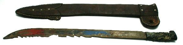 LARGE MACHETE WITH HANDMADE LEATHER SCABBARD