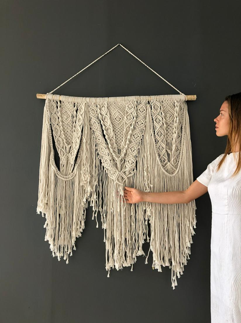 Large Macramé Wall Decoration - Handmade - Cotton, Wood