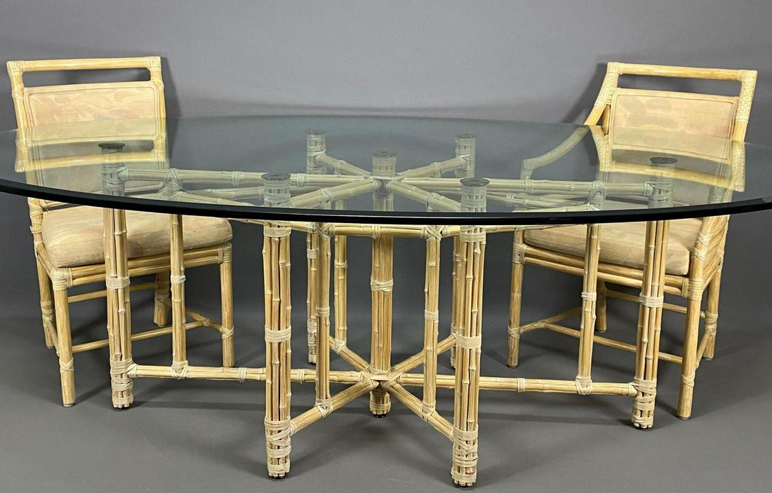 Set of six teak rattan dining chairs with a matching glass top tableAlexandra Howard Inc4.3(2)$2,0006 days Left