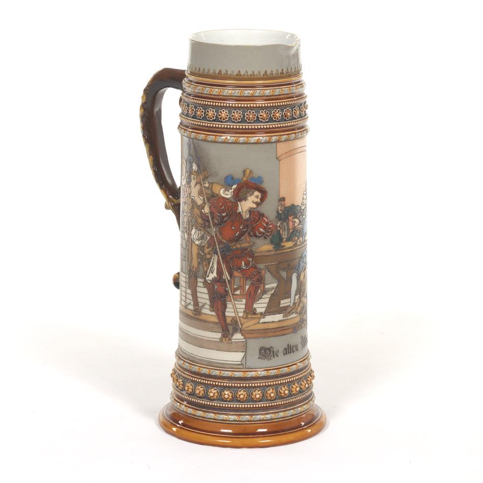 Large Mettlach Ceramic Pitcher With a Tavern Scene