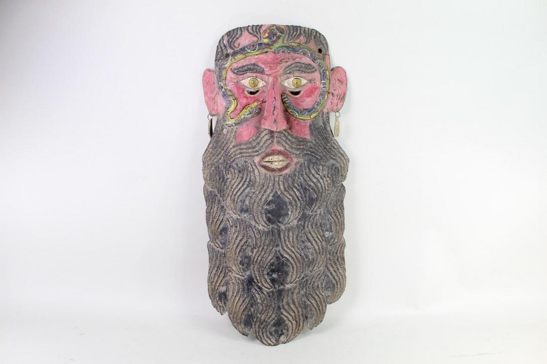 Large Mexican Ceremonial Polychrome Copper Dance Mask