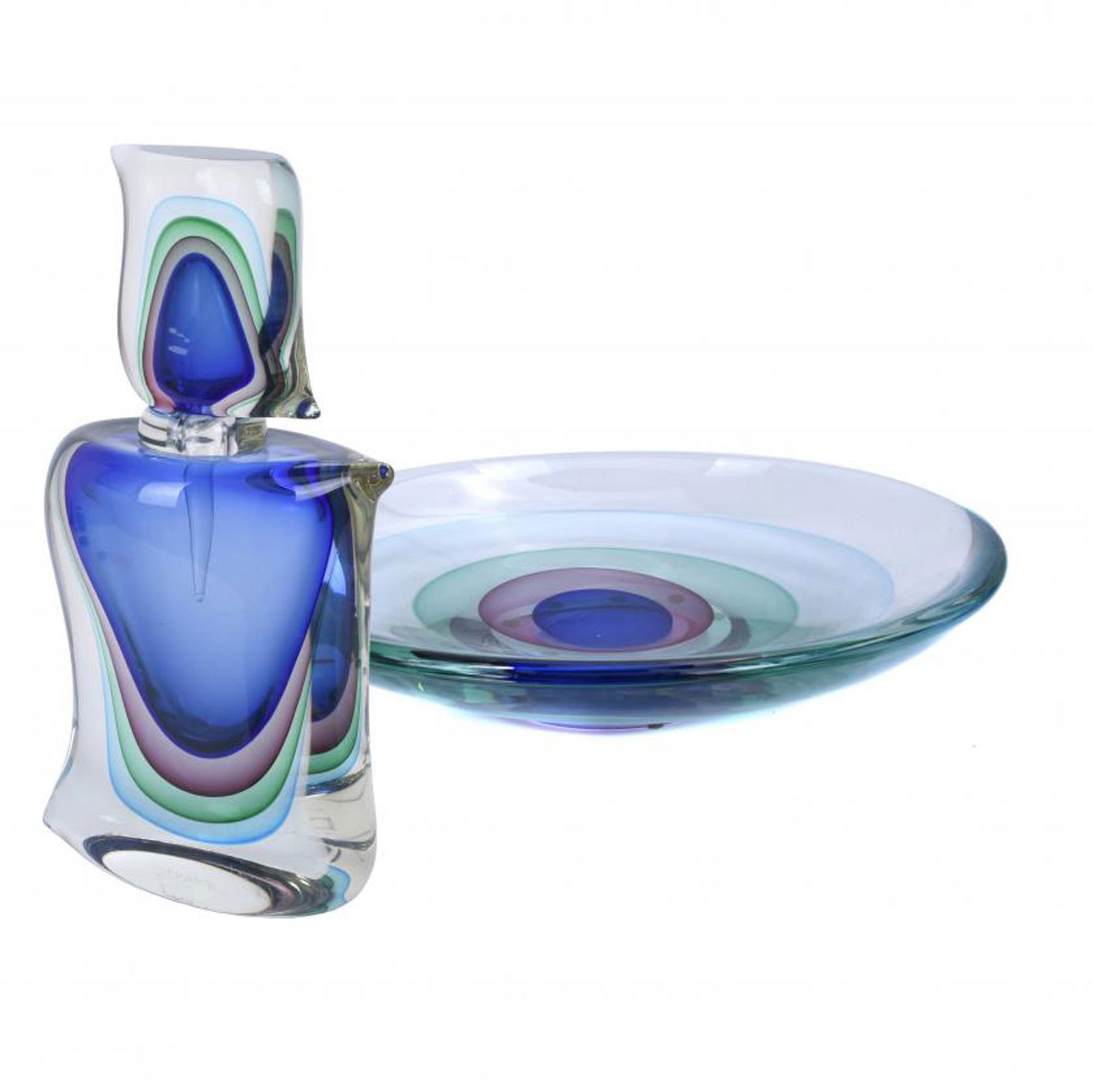 LARGE MURANO DISH AND BOTTLE-FLASK, 2003 AND 2005.