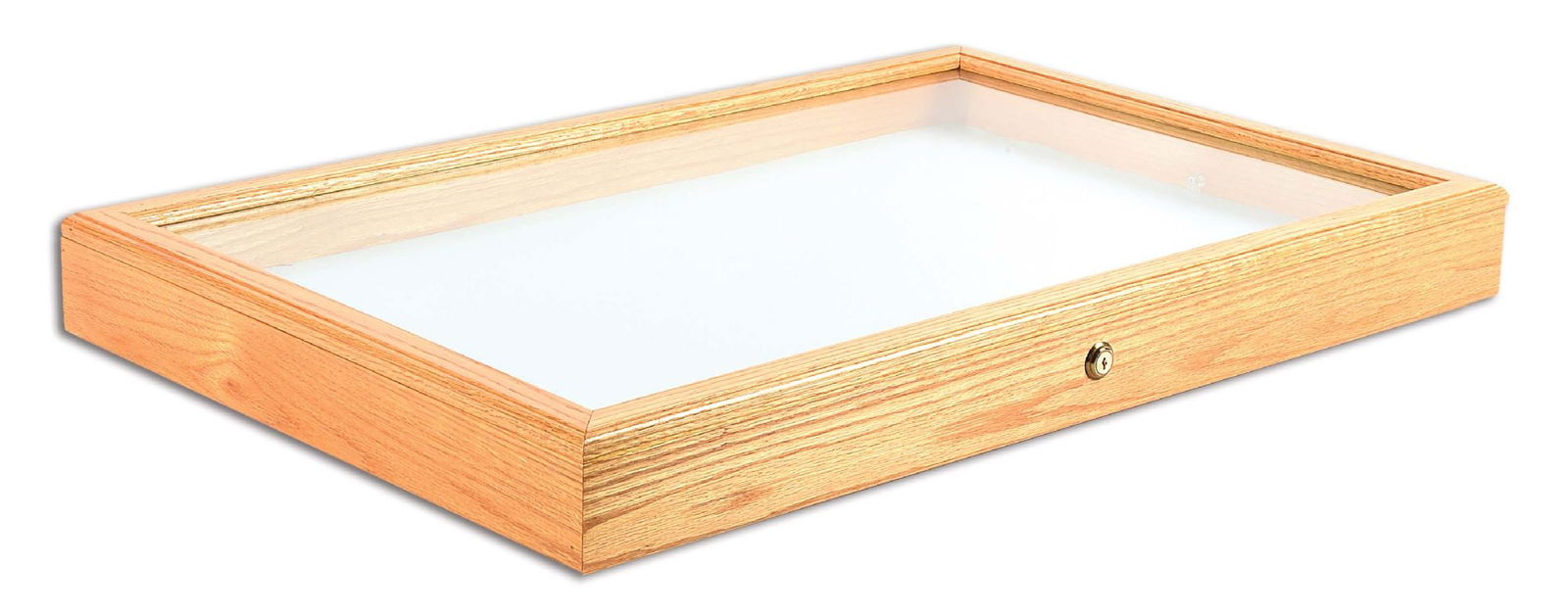 Large Oak Display Case With Key, Excellent Condition