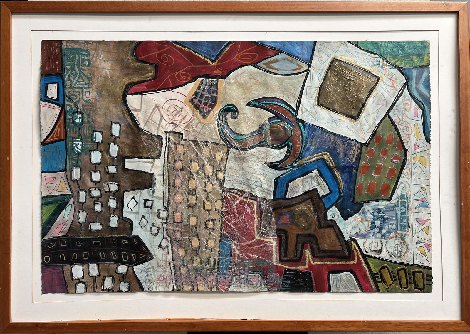 Large Signed Vintage American Abstract Expressionist Mid Century Modern Framed Original Oil PaintingVintage American abstract oil painting. Oil on paper. Signed. Framed. Measuring: 32 by 39 inches overall, and 25 by 26 painting alone. Please see all images for condition. Size is measured and written