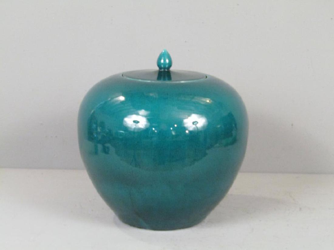 Large Oriental Glazed Ceramic Covered Jar