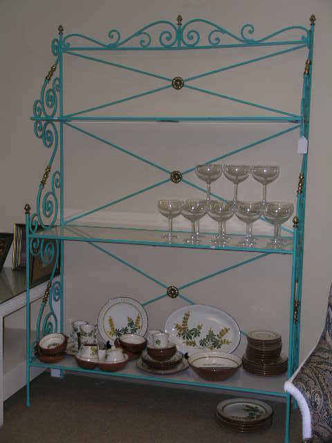 LARGE PAINTED BLUE GREEN MARBLE BAKERS RACK