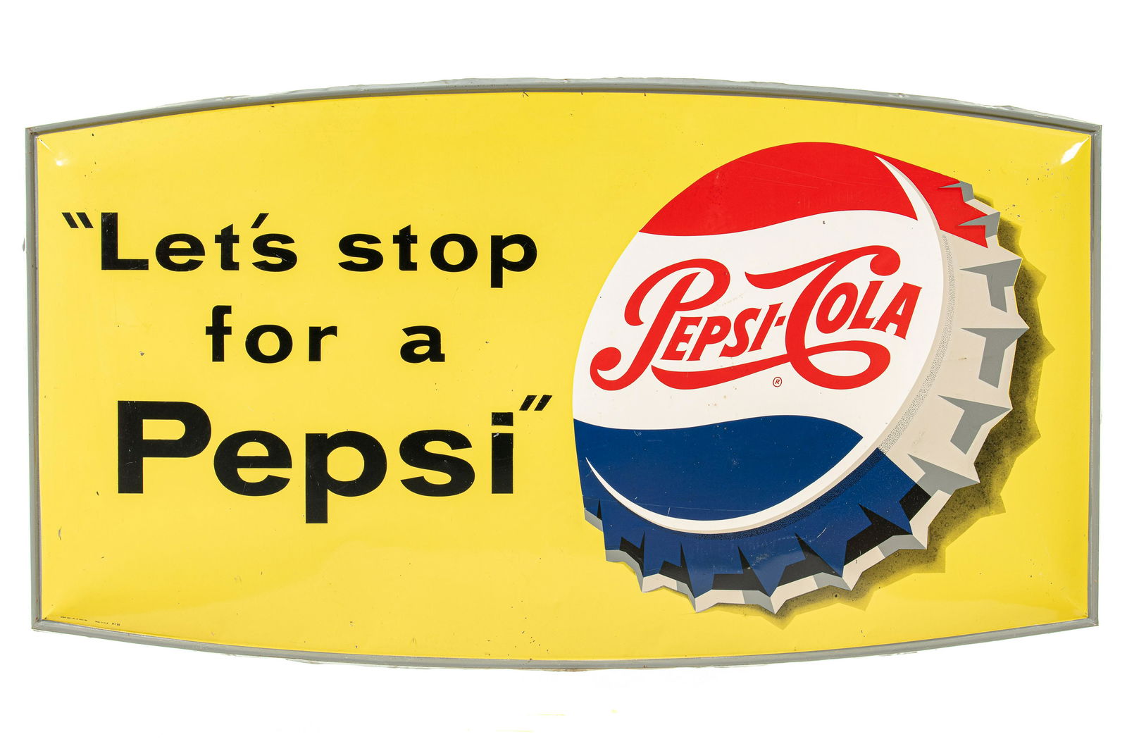 (2) Drink Pepsi-Cola Bottle Cap & Tin Signs LotMar 14, 2026Have A Pepsi Cola Embossed Single Sided Tin SignMar 21, 2026"Say PEPSI Please" Embossed SST Advertising SignMar 21, 202667" Say Pepsi Please Embossed SST Advertising SignMar 21, 2026Pepsi Advertising Tin Sign 22.5" by 32"Mar 14, 20261964 Drink Pepsi Cola Convex SST Bottlecap SignMar 21, 2026Vintage Pepsi Cola SST Store Advertising SignMar 21, 2026Pepsi-Cola "Enjoy a Pepsi" Door Kick SignMar 08, 2026Pepsi Cola 28" Emb. SST Bottlecap SignMar 21, 2026Drink Pepsi Cola Iced 5 Cent Single Sided Tin SignMar 21, 2026Pepsi Cola Lighted Plastic Counter Top Sign With ArrowMar 20, 2026Pepsi Cola 27.5" Emb. SST Bottlecap SignMar 20, 2026Pepsi-Cola Painted Metal Flange Sign W/ Bottle Cap GraphicMar 26, 2026Say Pepsi Please Light Up SignMar 21, 2026Pepsi Cola 5' DST Sign w/ Logo "Boldy's Mkt."Mar 20, 2026Pepsi-Cola Porcelain Door PushMar 14, 2026