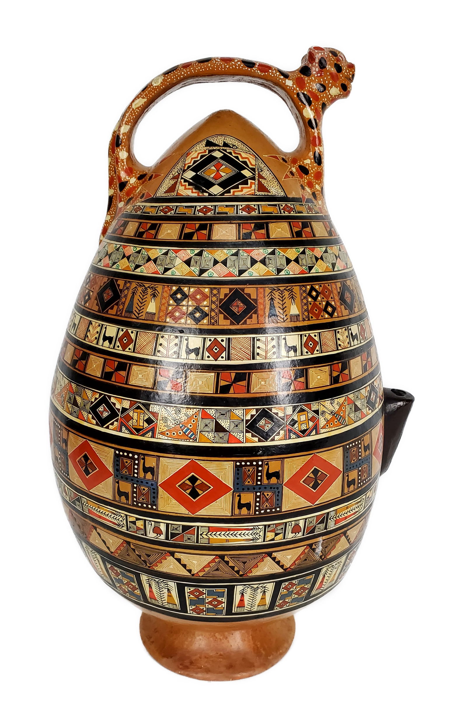 Large Peruvian Ceramic Painted Stirrup Jug
