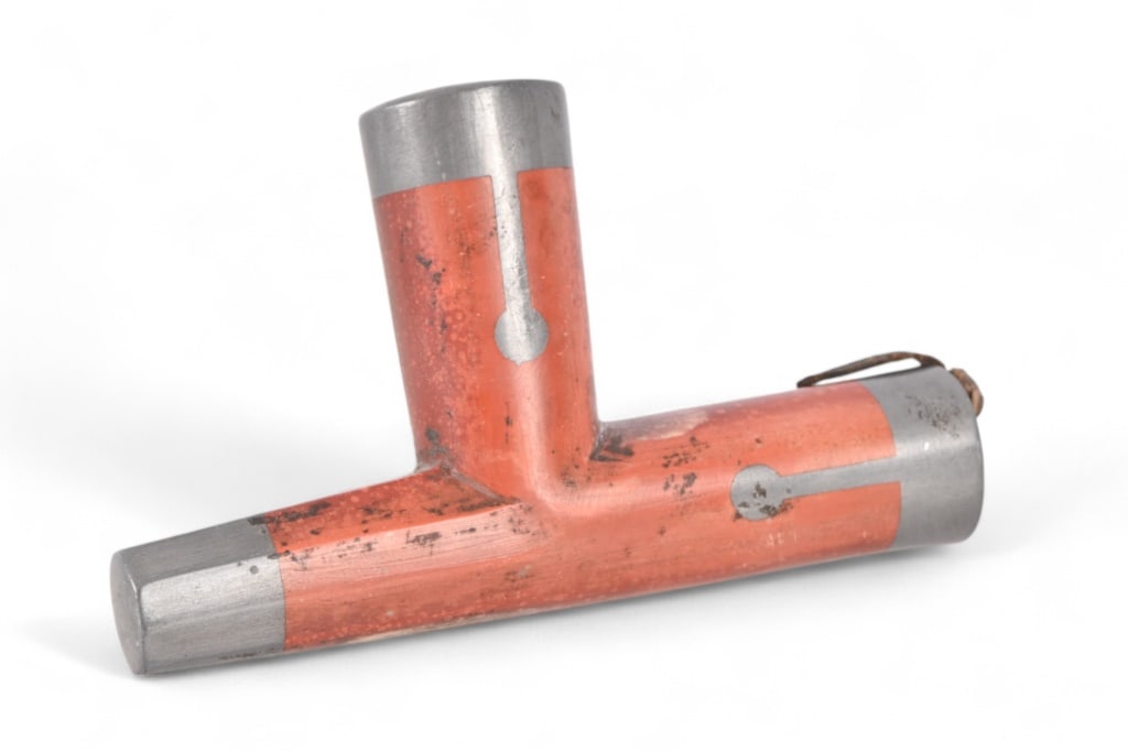 Large Pewter Inlayed Catlinite Indian Pipe