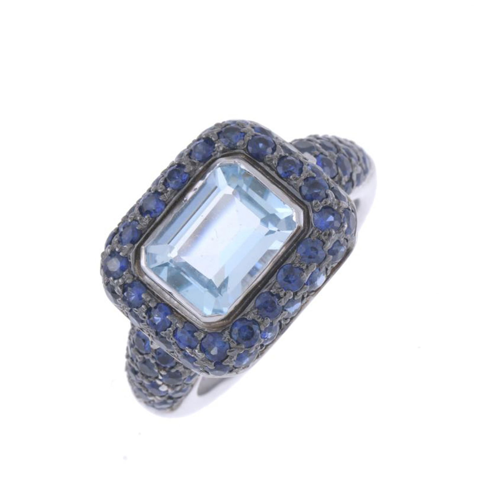 LARGE RING WITH AQUAMARINE AND SAPPHIRES.