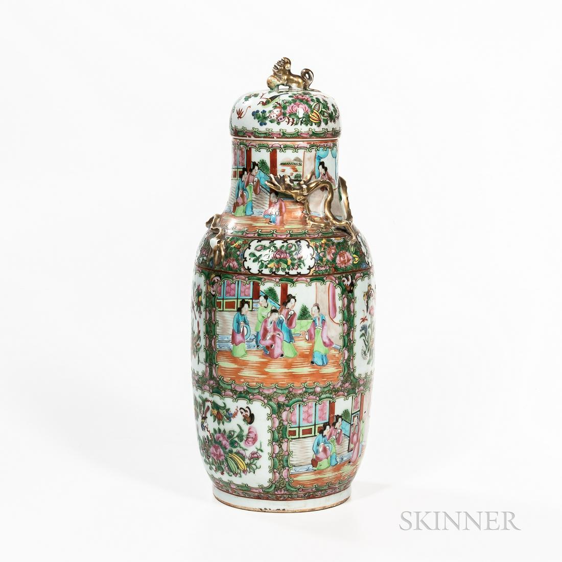 Large Rose Medallion Pattern Export Porcelain Jar with