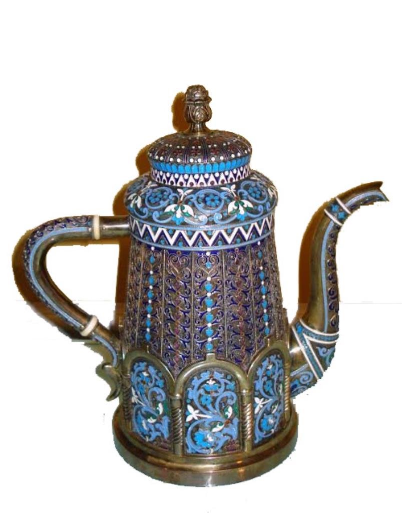 LARGE RUSSIAN SILVER ENAMEL TEA POT