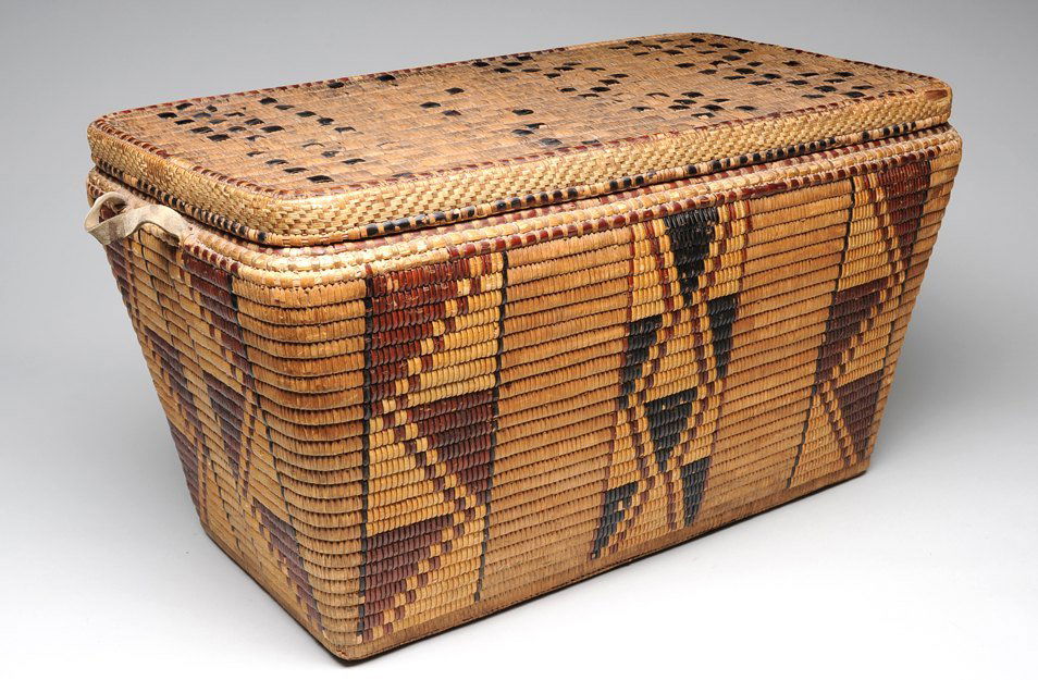 Large Salish Basketry Storage Trunk with Bold Imbr