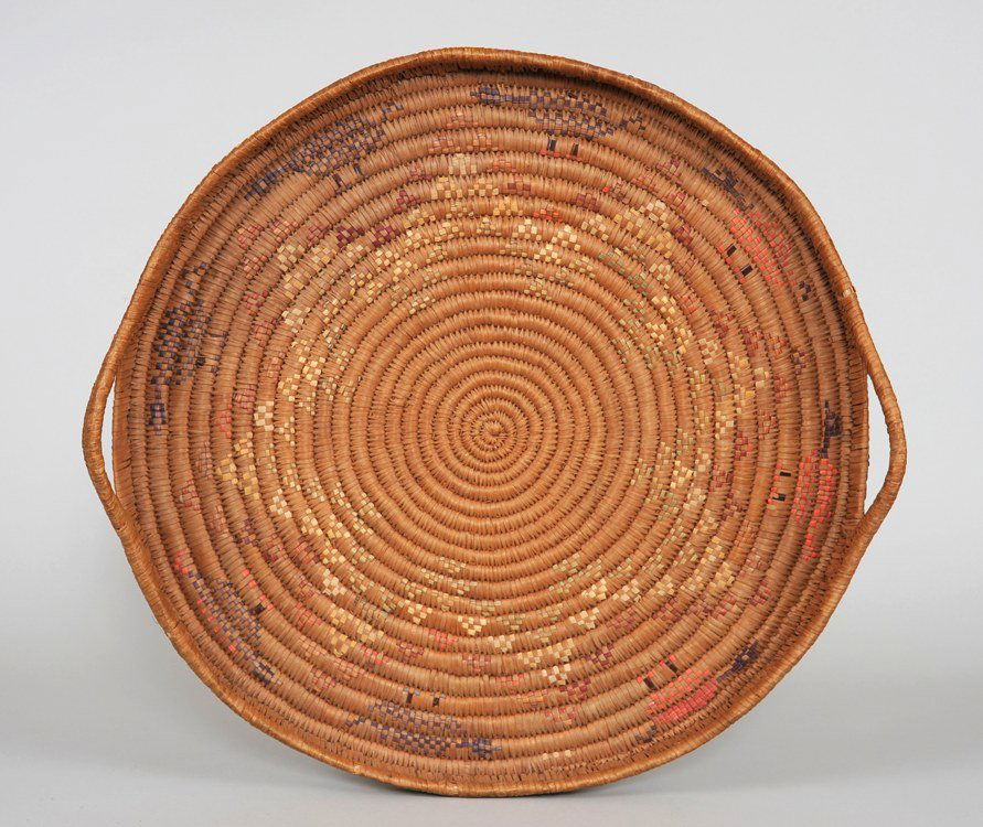 Large Salish Handled Basketry Tray with Zoomorphic