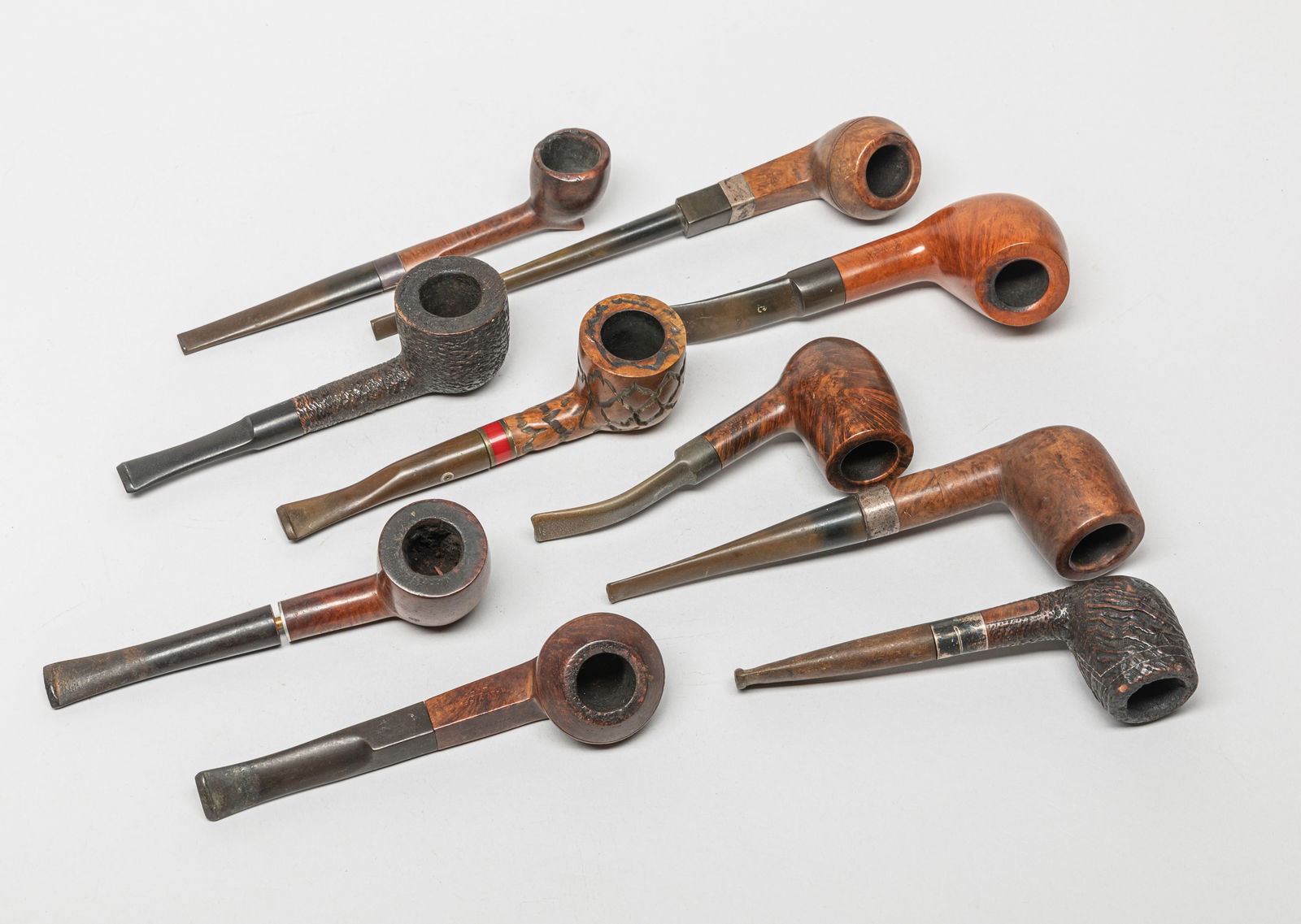 SoldEstate Vintage Pipe & StandsEstate large set pipes, pipe box & crystal glass jar. Around 8-8 inch. (largest stand)See Sold Price