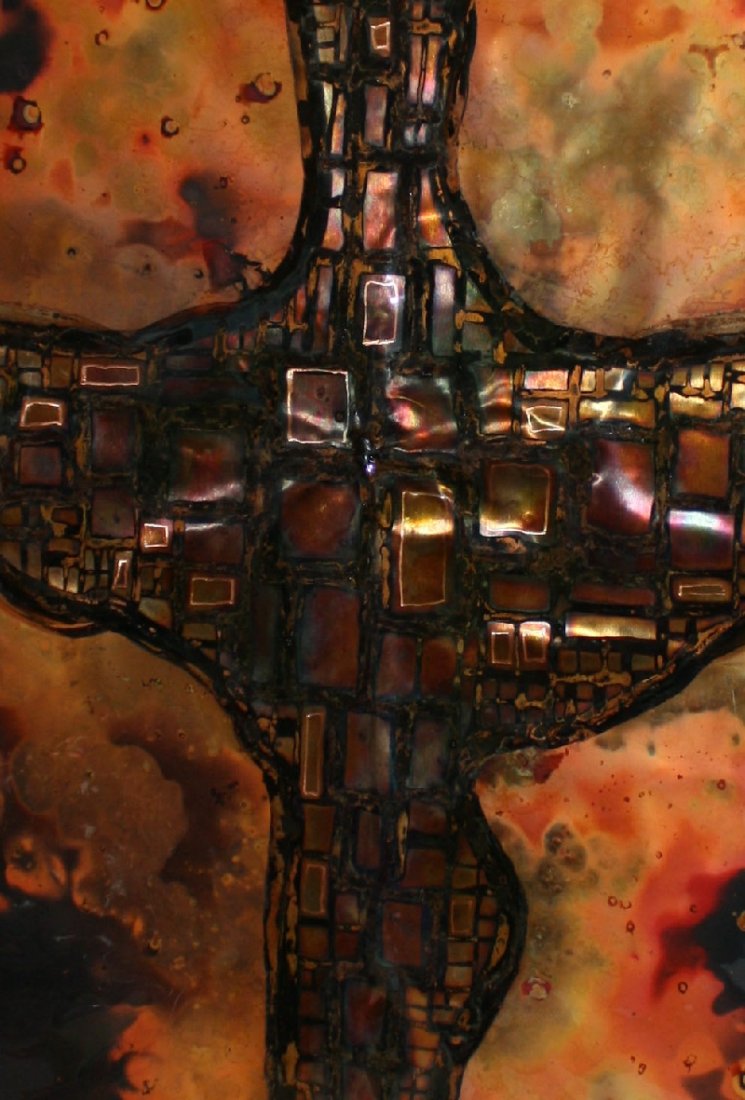 Large signed copper etched panel
