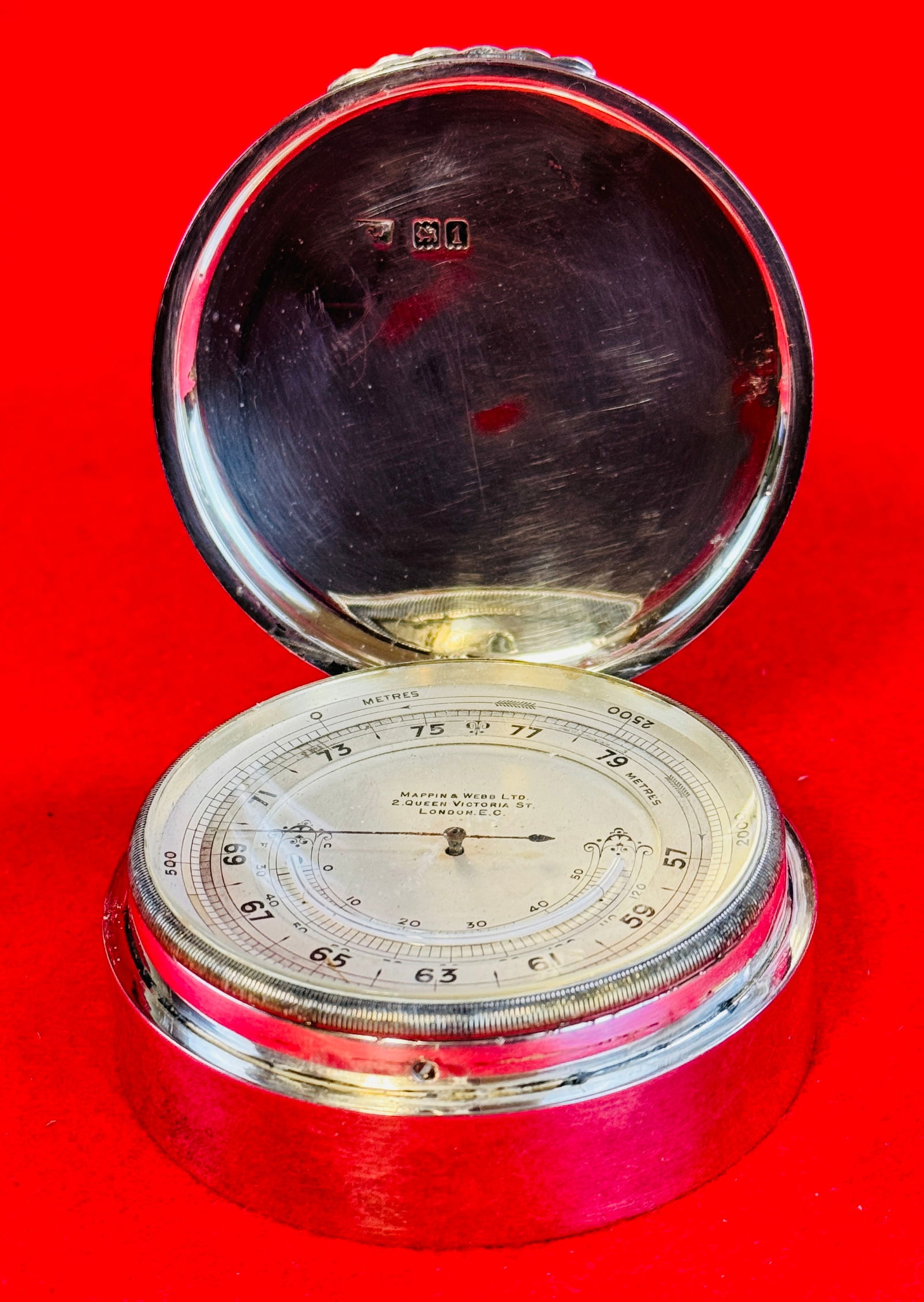 Large Silver Cased Traveling Desk Barometer