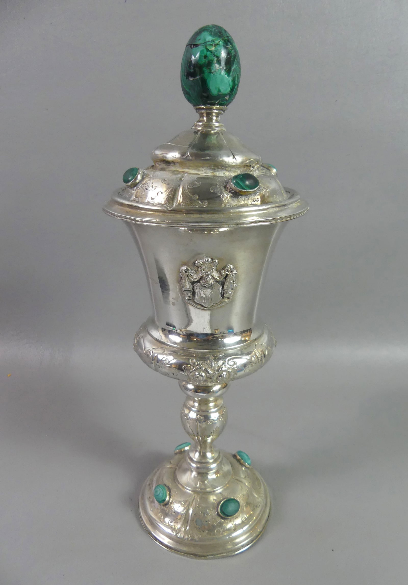 LARGE SILVER CHALICE CUP W/MALACHITE GEMS