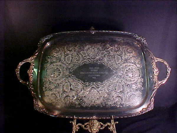 LARGE SILVER PLATE ORNATE HANDLED TRAY