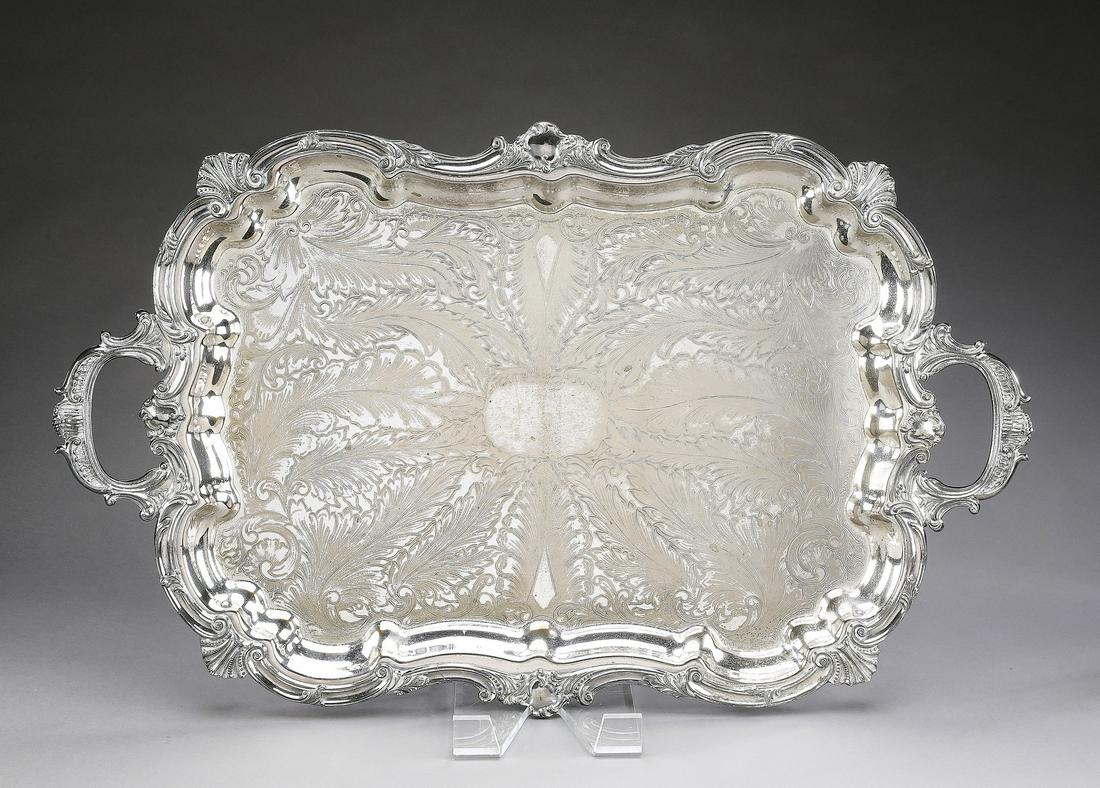 Large silver plate tray in the Rococo taste