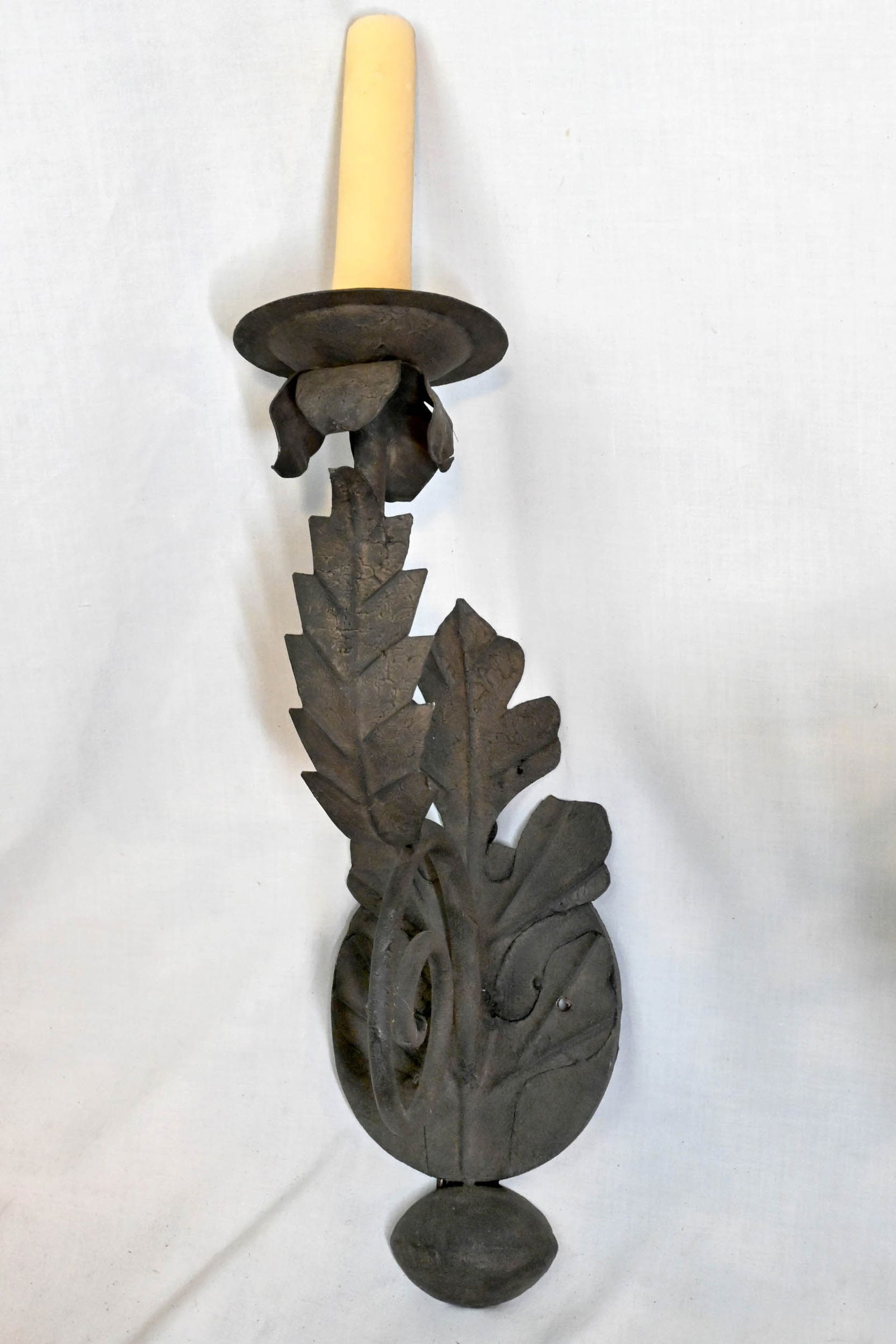 Large single iron candle sconce with leaves