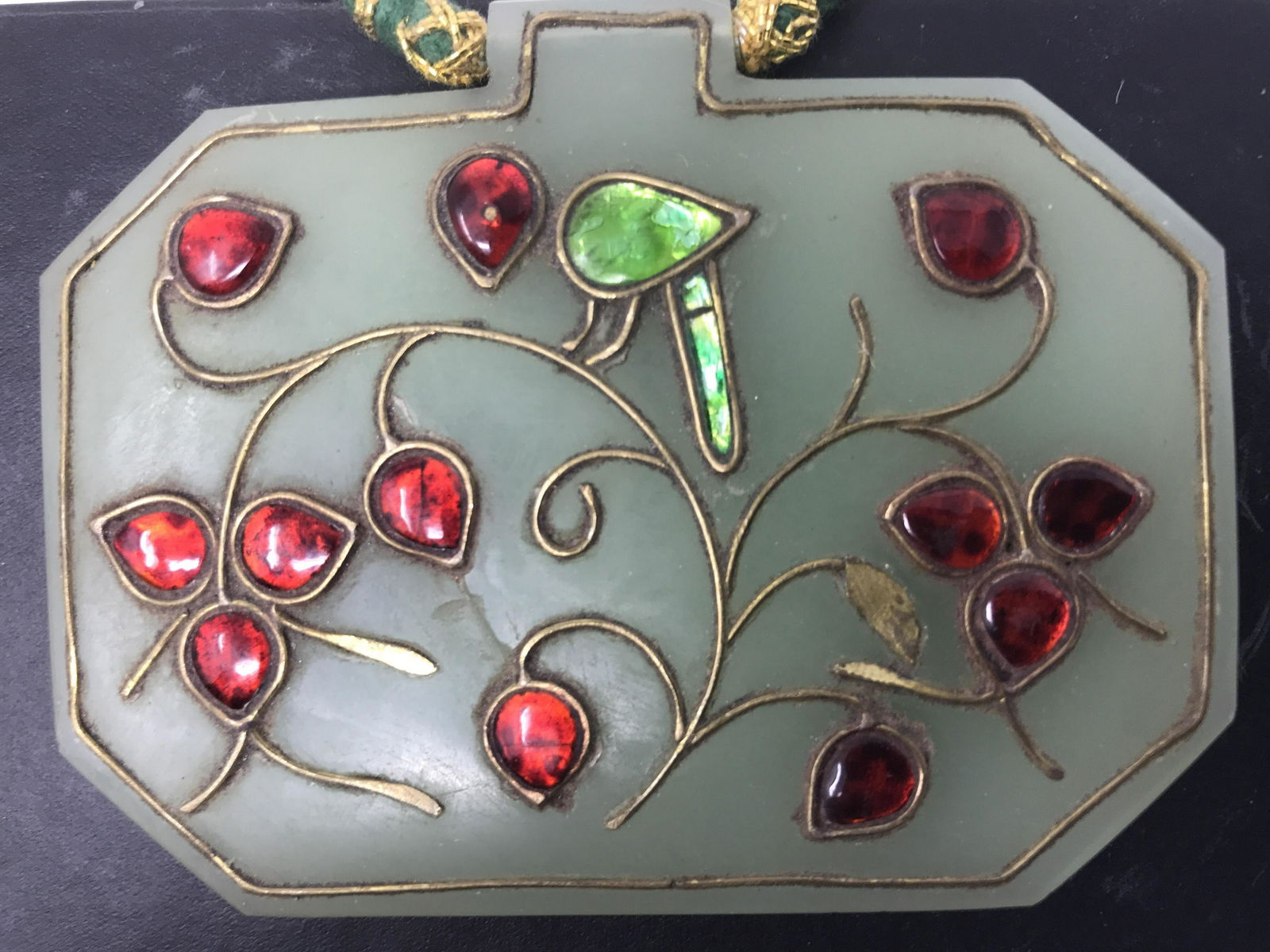 18K Gold Inlaid Jade Pendant