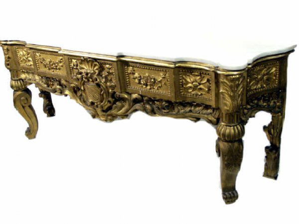 LARGE SPAIN MARBLE TOP GILT WOOD CONSOLE TABLE