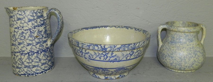 Large sponge ware pitcher & sponge ware bowl