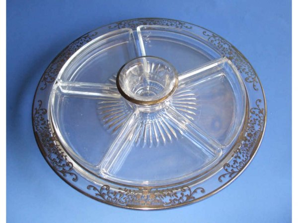 SoldLot 3 Sterling Overlay Tray & Glass Serv DishesLot includes 1 tray with sterling silver overlay. Overlay has floral and leaf detail. Lot also includes 2 glass serving dishes with geometric relief pattern to base. Each piece has handles at sides. LSee Sold Price