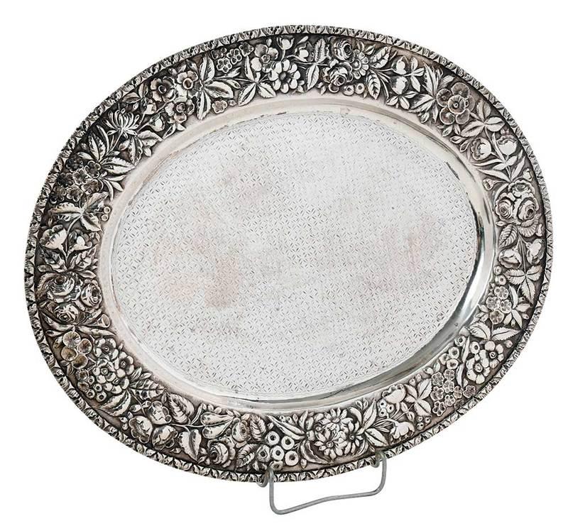 Large Sterling Repousse Tray